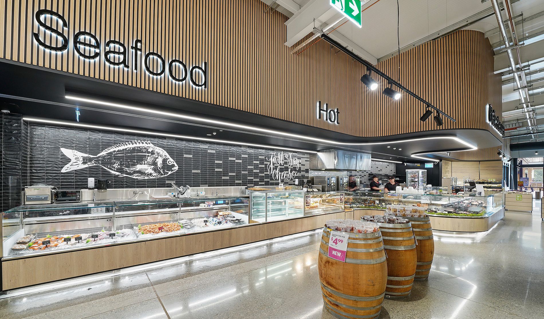Designed as an open fresh market and with convenience in mind the store includes in house creche for busy parents; environmentally innovative and low energy refrigeration and mechanical systems; instore hardware and an electronics hub. If you are going to provide something different and out of the box do it well was the comment from our client and this store delivers on all fronts.